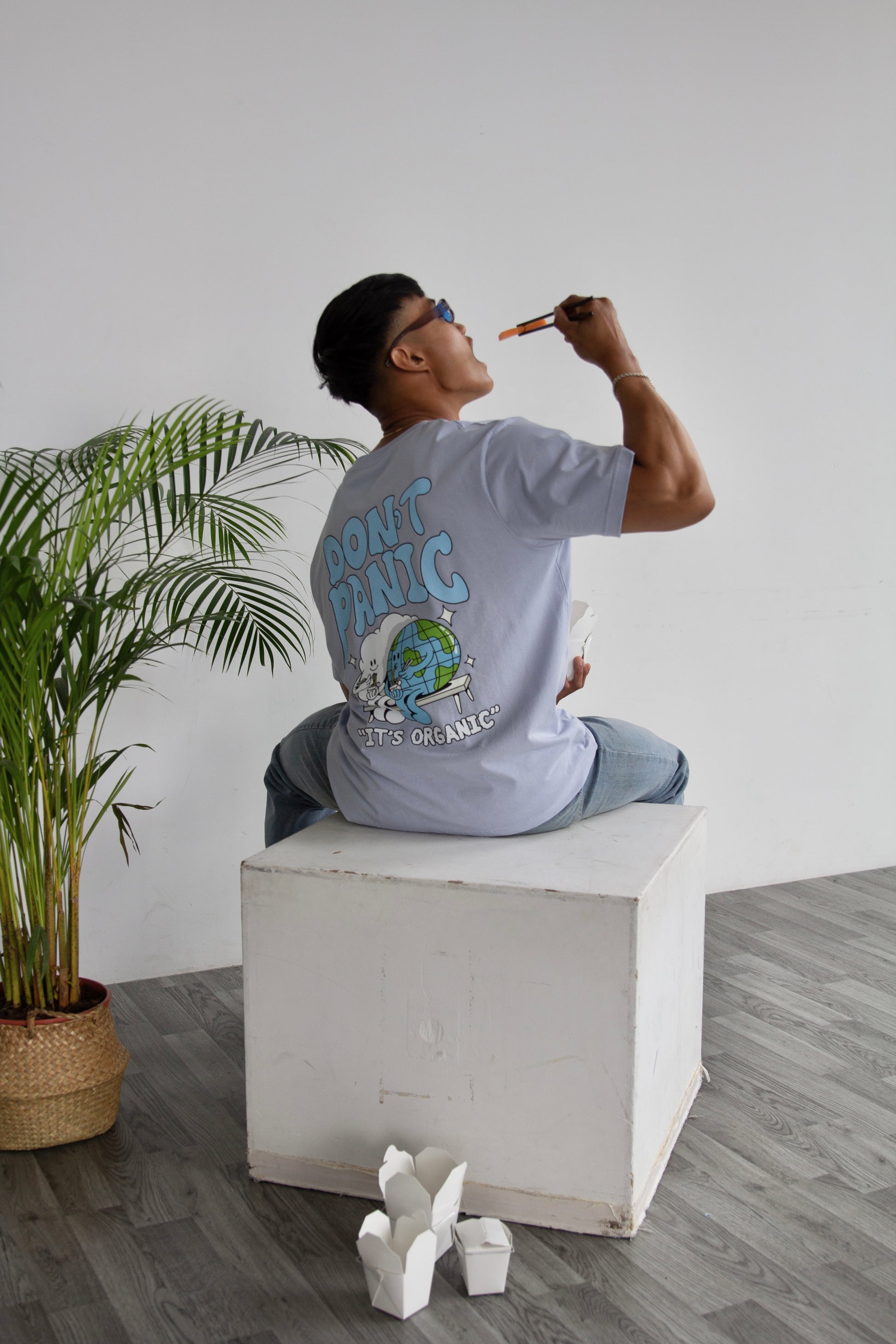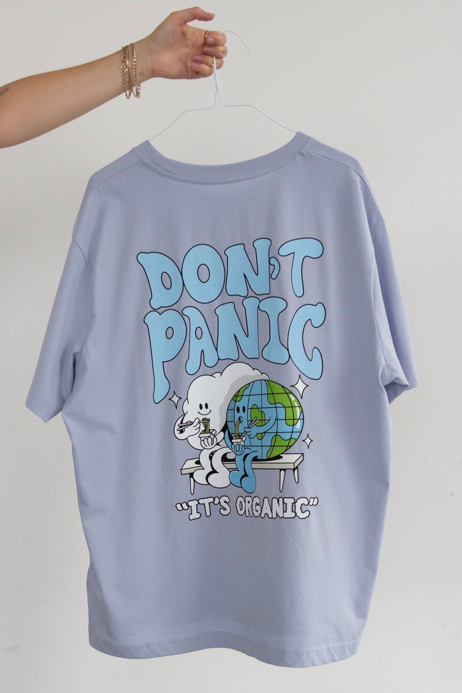 'Amici' is Italian for friends! This design was created whilst living in Italy so it's a little nod to that, featuring our two main characters - the globe and the cloud. They are sat spending some quality time together, eating some vegan noodles! The text says 'don't panic, it's organic' because our tees are 100% organic. This design was the first out of our retro style illustrations, followed by SAKURA and CLOUD WALKER - be sure to check those out too.