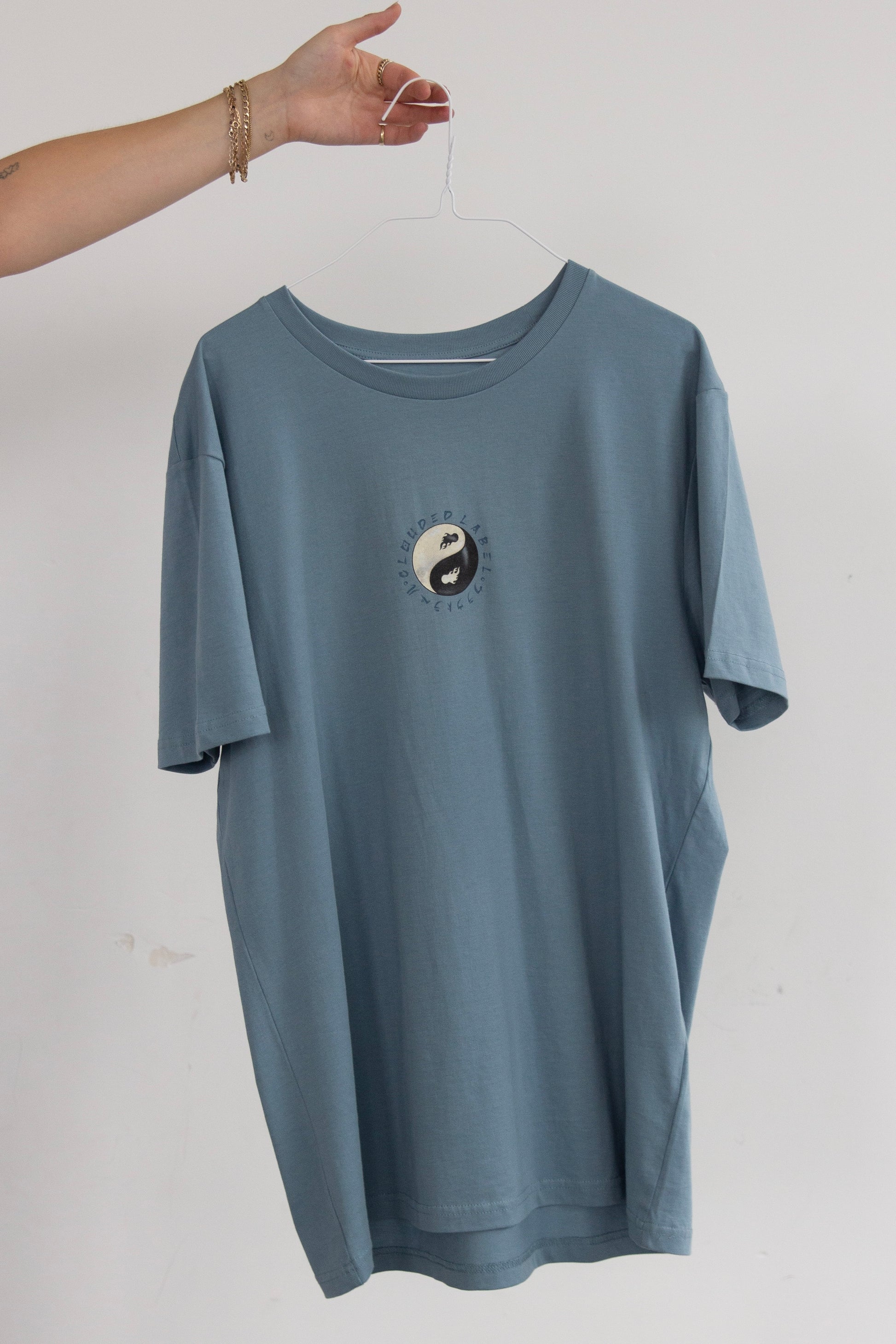 We love the power behind this tee and the colour palette of steel blue, silver/grey and teal.
