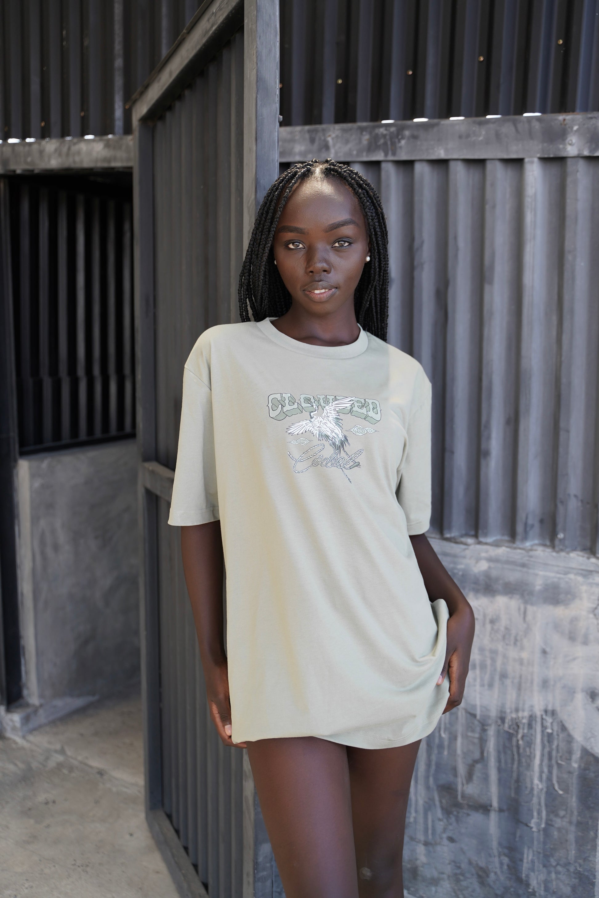 Who doesn't love a good pair of cowboy boots? And EVEN better with japanese designs on! The HOMETOWN tee is a cool toned matcha green colourway, featuring Japanese herons, cherry blossoms and kanji spelling out our brand name on a pair of boots. Lassoed by a rope spelling out our logo.