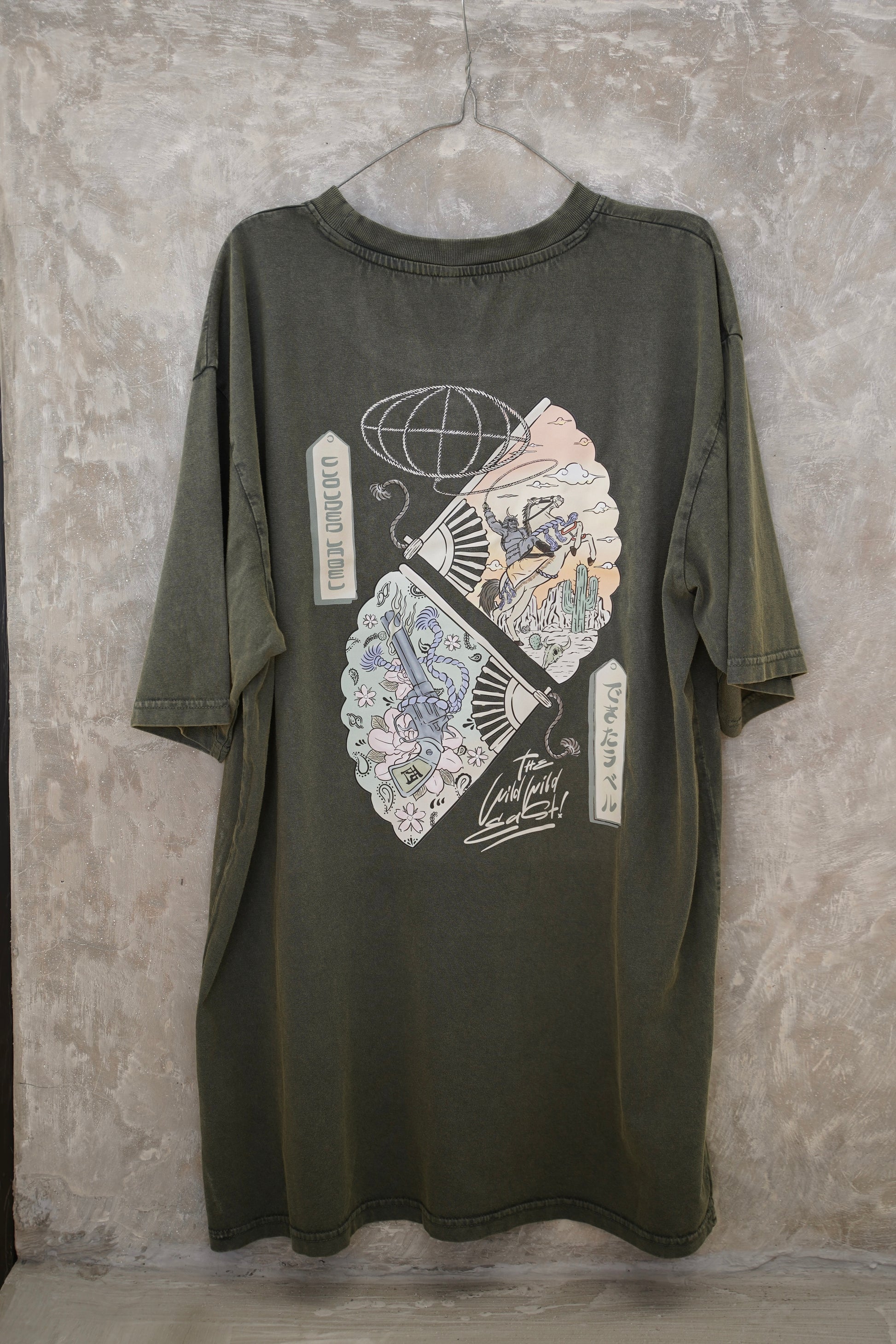 DISCLAIMER: the front of the tee is not featured in photos but the front print can be found on our socials. It is the clouded globe in rope, with clouds and kanji of 'clouded label' similar to our KATANA and RYŪ tees.